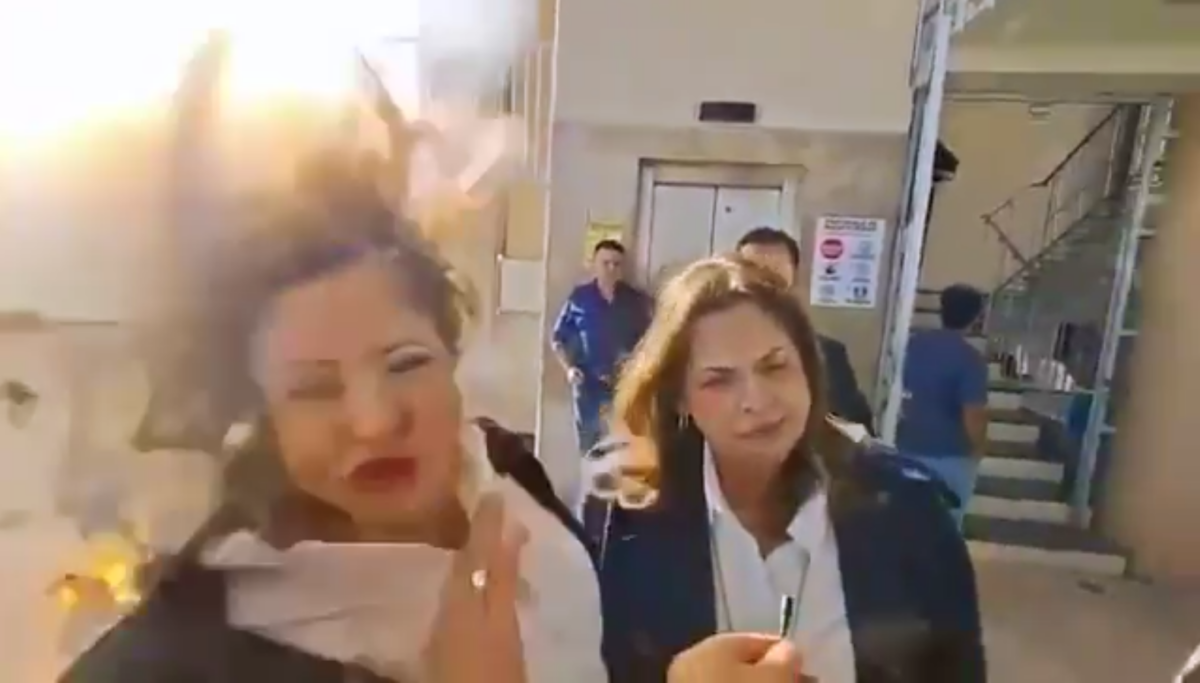 Durante a coletiva, enquanto Gladis se posicionava para falar com jornalistas, manifestantes atiraram uma bomba caseira na direção de onde estava a deputada, explodindo em seguida.
