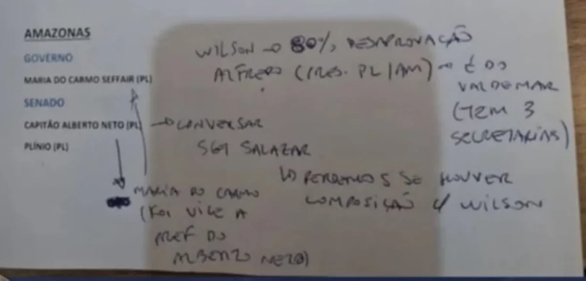As anotações indicam que o PL pretende ampliar sua presença no Senado, considerado peça-chave para a consolidação de uma base conservadora capaz de influenciar pautas sensíveis no Congresso Nacional. Nesse contexto, o Amazonas é visto como território estratégico, mas a formação da chapa precisa atender a critérios de viabilidade eleitoral.