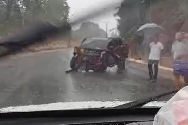 Nelci Lira e a motorista tiveram apenas ferimentos leves. O acidente ocorreu após o veículo deslizar na pista molhada.